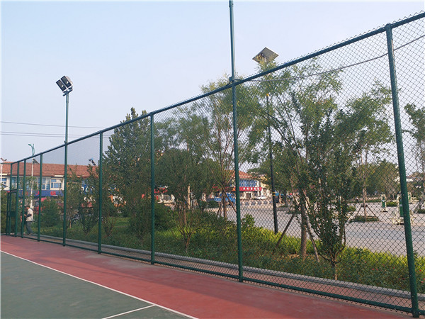 扁鐵組裝式場(chǎng)地圍欄網(wǎng)是一種用扁鐵將勾花網(wǎng)固定在立柱和橫梁上的體育場(chǎng)地圍網(wǎng)欄。